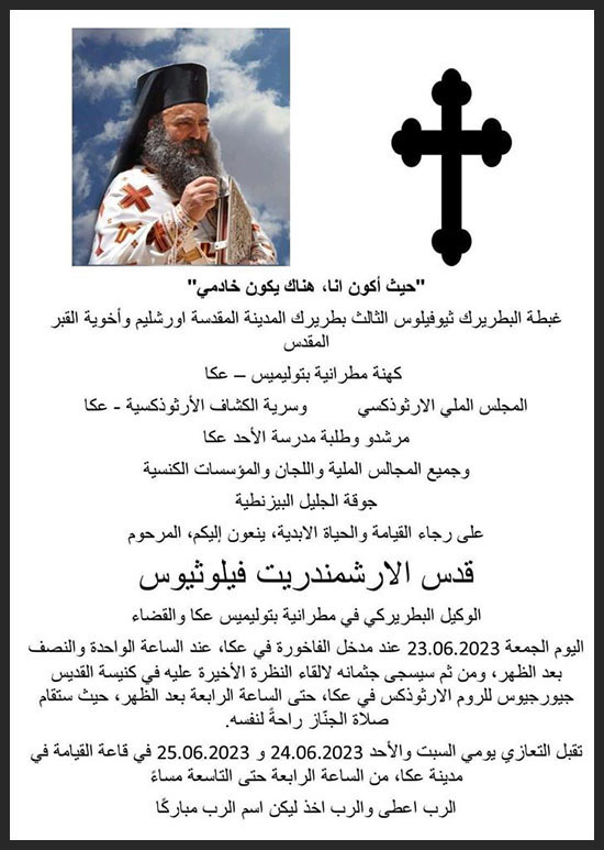 عكا… قدس الارشمندريت فيلوتيوس في ذمة الله