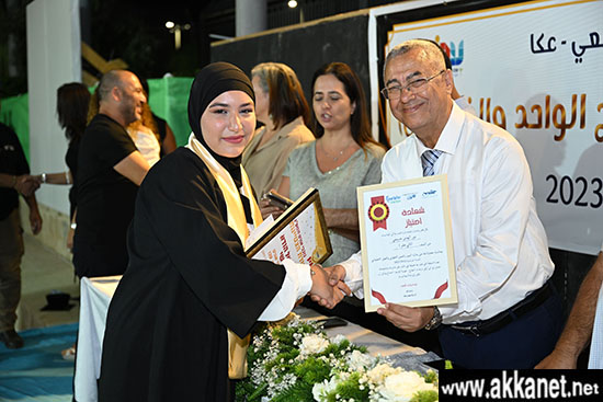 في أجواء سادتها الفرحة العارمة والسعادة تم بحمد الله تخريج الفوج ال 51 من طبقة الثواني عشر وذلك يوم الاحد الموافق 18-6-2023 ،  وقد كانت المرحلة الأولى من الاحتفال في داخل الصفوف بحضور الأهالي والطلاب والمربيات ، حيث تم توزيع الشهادات ،وتم عرض مصور في كل صف لرحلة تعليمية تربوية ، بمشاعر إنسانية جميلة، وفي المرحلة الثانية فقد اكتظت ساحة المدرسة بالمئات من ضيوف ومعلمين والأهالي والطلاب في أروع صورة، يتقدمهم السيد شمعون لانكري رئيس بلدية عكا والسيد ادهم جمل نائب رئيس البلدية، والسيد آفي افيرام  مفتش لواء الشمال في شبكة مدارس اورط، وقد بدأ الاحتفال بتقديم معزوفات موسيقية مقدمة من طلاب كونسرت المدرسة بإشراف أستاذ الموسيقى ادهم قشاش،  وبالتصفيق والفرح كان استقبال الخريجين بالترتيب الصف الثاني عشر (1) والمربية سوزان زيدان، الصف الثاني عشر ( 6) والمربية بيكي هاشول ، الصف الثاني عشر ( 2) والمربية انعام سعدي عطُر، الصف الثاني عشر( 3) مع المربية نيفين أبو غنيمة ، الصف الثاني عشر (4) والمربية ولاء سعدي، والصف الثاني عشر( 5) والمربية شيرين عبد اللطيف، وكانت كلمة الخريجين التي اضفت على الاحتفال رونقا جميلا لما حملت تلك الكلمات من معاني رائعة لمشاعر  الطلاب نحو مدرستهم ،  وقد القى الأستاذ محمد حجوج مدير المدرسة بكلمة رحب بالحاضرين وتمنى للخريجين المستقبل الباهر، وتم قراءة الفاتحة على روح كل من المرحوم اكرم خطيب من العاملين في المدرسة ،المرحوم ابن الأستاذ يوسف السالم، المرحوم  ابن المعلمة حنان معدي، كما وشكر جميع أعضاء إدارة المدرسة والهيئة التدريسية في الإعدادية والثانوية لعملهم ومجهودهم لوصول الخريجين لهذا اليوم، وشكر عمل العاملين والعاملات في المدرسة، وتمنى للخريجين مواصلة المسيرة التعليمية في الجامعات والكليات، وقد القى السيد شمعون لانكري رئيس بلدية عكا بكلمة طيبة حيث تمنى للخريجين مواصلة العلم الاكاديمي وتحدث عن إنجازاته خلال ال 20 سنة رئيس بلدية عكا، وفي لفتة طيبة فقد تم تكريم رئيس البلدية بمناسبة انهاء عملة خلال تلك السنة بتقديم هدية تذكارية قدمها الأستاذ محمد حجوج باسم المدرسة تقديرا لعملة خلال تلك السنوات في شتى النواحي التعليمية والثقافية والاقتصادية، وقد شهدت عكا في عصره نهضة كبيرة في جميع المجالات كما تم تكريم المربية القديرة سوزان زيدان  وقدمت لها هدايا تذكارية وسط أجواء ومشاعر جياشة بالفرحة والدموع ،وقد تخلل الاحتفال تقديم طالبات الجوقة وصلات غنائية بإشراف الأستاذ ادهم قشاش مسؤول الموسيقى والجوقة في المدرسة،   وقد تجاوب جمهور الحاضرين مع الفقرات الفنية بالتصفيق والاعجاب، وقد تحدث السيد آفي افيرام مفتش لواء الشمال في شبكة اورط بكلمة مباركة هنأ الأهالي الكرام والطلاب الخريجين على هذا اليوم البهيج ، وتحدث عن التواصل المستمر بين شبكة اورط والمدرسة من اجل نجاح المسيرة التعليمية والتربوية في المدرسة، والقى السيد احمد سروان رئيس لجنة أولياء أمور الطلاب بكلمة طيبة حيث تمنى لكل الخريجين كل النجاح والتوفيق في المراحل القادمة ، وتلاه الطالب خاد عقُر رئيس مجلس الطلاب الذي هنأ الطلاب والطالبات الخريجين بيوم تخرجهم وتمنى لهم باسم جميع طلاب المدرسة كل النجاح والتوفيق، ثم كانت فقرة التكريم حيث اعتلى المنصة كل من  ( الأستاذ محمد حجوج مدير المدرسة، الأستاذ وفيد منصور مدير الإعدادية، السيدة اوريت اسياج مديرة التربية والتعليم في بلدية عكا، السيدة سبأ السيد نائبة مديرة التربية والتعليم في بلدية عكا، الأستاذ غسان ضاهر المدير التعليمي، الأستاذ صالح اسدي نائب مدير الإعدادية، المعلمة سوزان زيدان مديرة بيت التاسع والعاشر، المعلمة نهاية قربي مديرة بيت الحادي عشر والثاني عشر ، والسيد احمد سروان  رئيس لجنة أولياء الامور) حيث تم تكريم المربين والمربيات الذين حصل طلابهم على نسبة بجروت عالية في  العام الدراسي 2021-2022 وهم (تحرير مسلماني- رلى جمل -محمد شحادة – يوسف السالم 