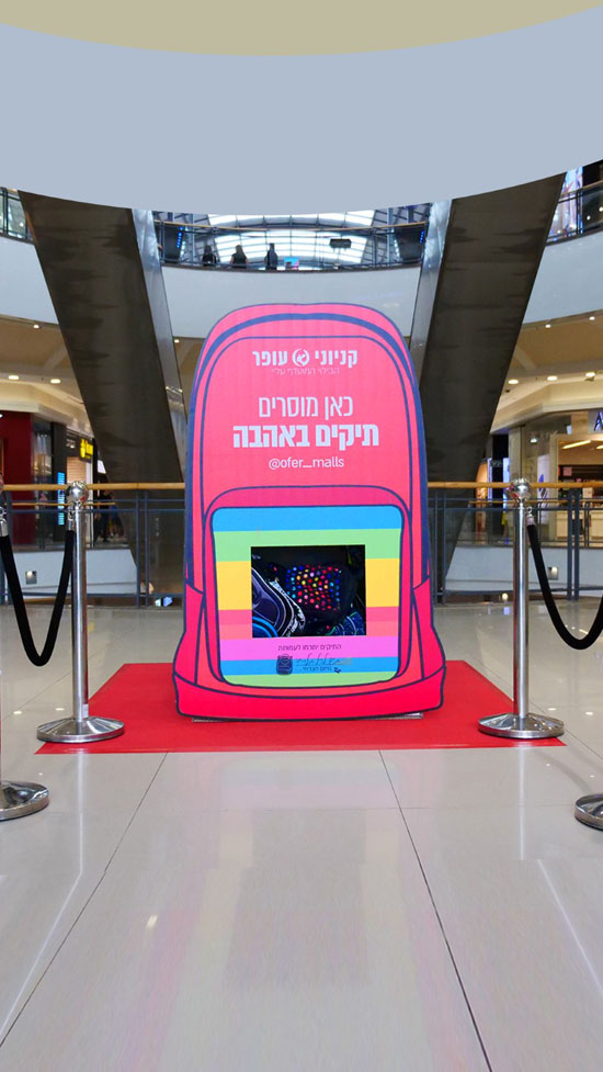كجزء من النشاط ، سيتم إنشاء محطات لتسليم الحقائب المدرسية في 17 مركزًا تجاريًا في كنيونات عوفر في جميع أنحاء البلاد