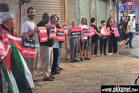عكا… العشرات يشاركون في وقفة احتجاجية دعما لجنين