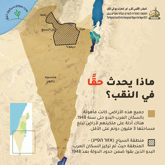 سيكوي- أفق: الخطة تسعى إلى محو القرى مسلوبة الاعتراف، إخلاء سكانها، وتركيزهم في البلدات المعترف بها، التي تعاني بنفسها من شح الموارد والخدمات الأساسية.