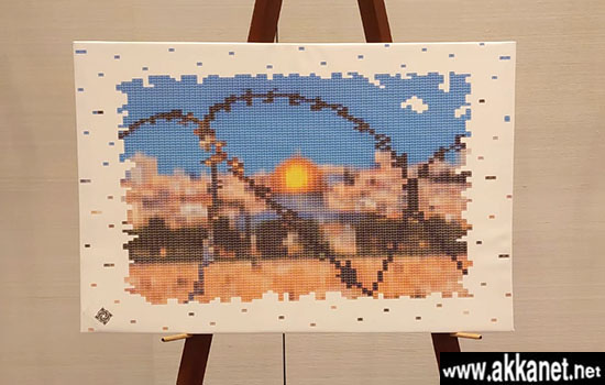 وقد قام قزموز بتصميم لوحة فنيه رائعة للقدس تحت الحصار تم تصميمها من آلاف الكلمات من كلمة “القدس” بما يشابه الفسيفساء.