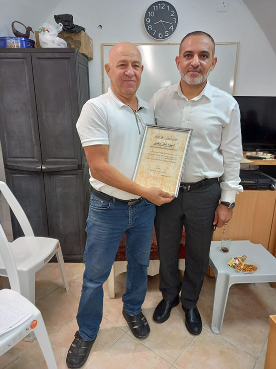 وفي نهاية المداخلة قام المنتدى بتكريم الشيخ يوسف ابو صغير بتقديم شهادة شكر وتقدير على عطائه المتواصل.
