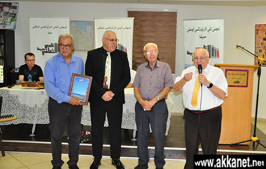 ولتقديم درع التكريم دُعي الشاعر رشدي الماضي، السيد جريس خوري ممثلا عن المجلس الملّي الأرثوذكسي والمحامي فؤاد نقارة.