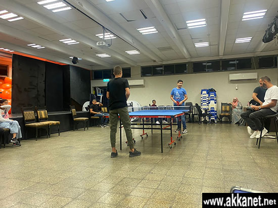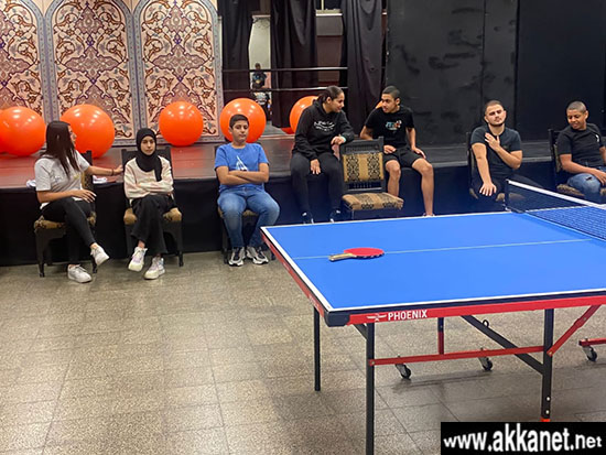 نظمت المراكز الجماهيرية أسوار عكا تورنير كرة الطاولة ” بينج بونج ” لمجموعة الشبيبة، التي شارك فيها المشاركين، التورنير عبارة عن عدة مراحل، ووصل الى المرحلة النهائية كانت المنافسة بين هديل بغدادي وايهاب حتحوت التي نتج عنها فوز الأخير بالمرتبة الأولى، الذي سلمه كأس الفوز الزميل زاهر حزبون باسم المراكز الجماهيرية أسوار عكا.