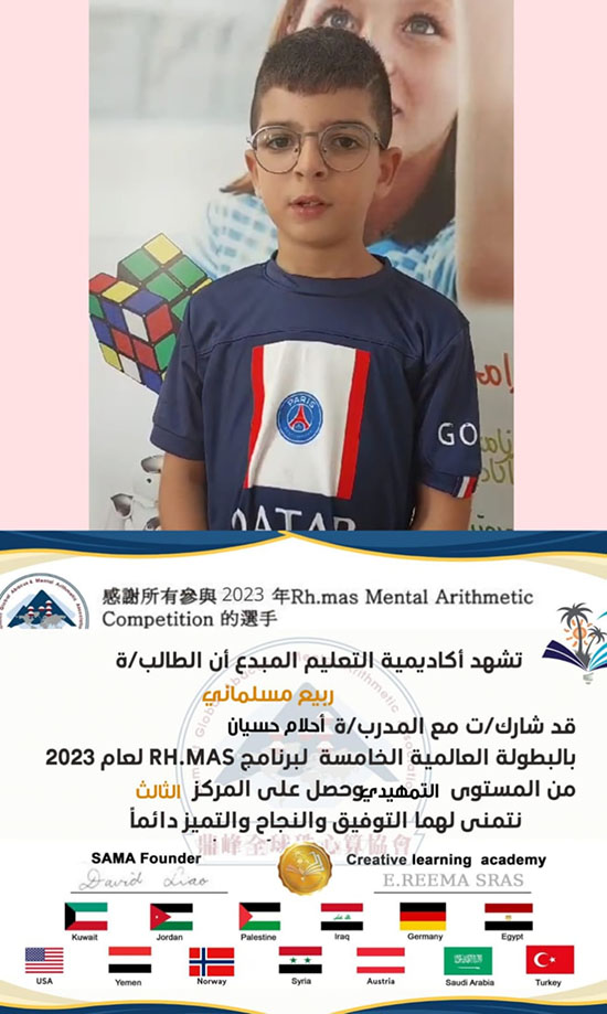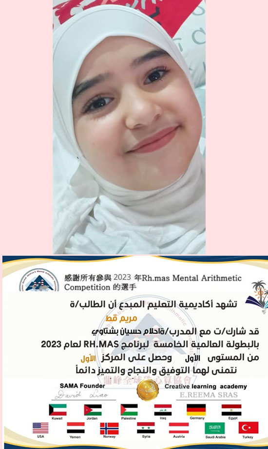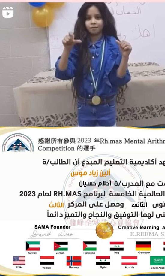 بمشاركة اكثر من 13 دولة اشترك طلاب من مدينة عكا مع المدربة احلام حسيان بشتاوي ، بالمسابقة العالمية للحساب الذهني ( Rh .mas.) بعد تأهلهم للنهائيات، واحرزوا مراكز اولى ومشرفة.