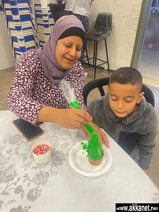 نظمت المراكز الجماهيرية أسوار عكا يوم أمس الثلاثاء ورشة مميزة لصناعة وتزيين كعكة شجرة الميلاد، ومن الملفت هذه المرة أن الورشة من تقديم والدتين للأطفال المشاركين، وهما يسرى مغربي وحنان هاني، حيث تطوعتا في صناعة قالب كعكة (كاب كيك) وتمرير الورشة للأطفال المشاركين.