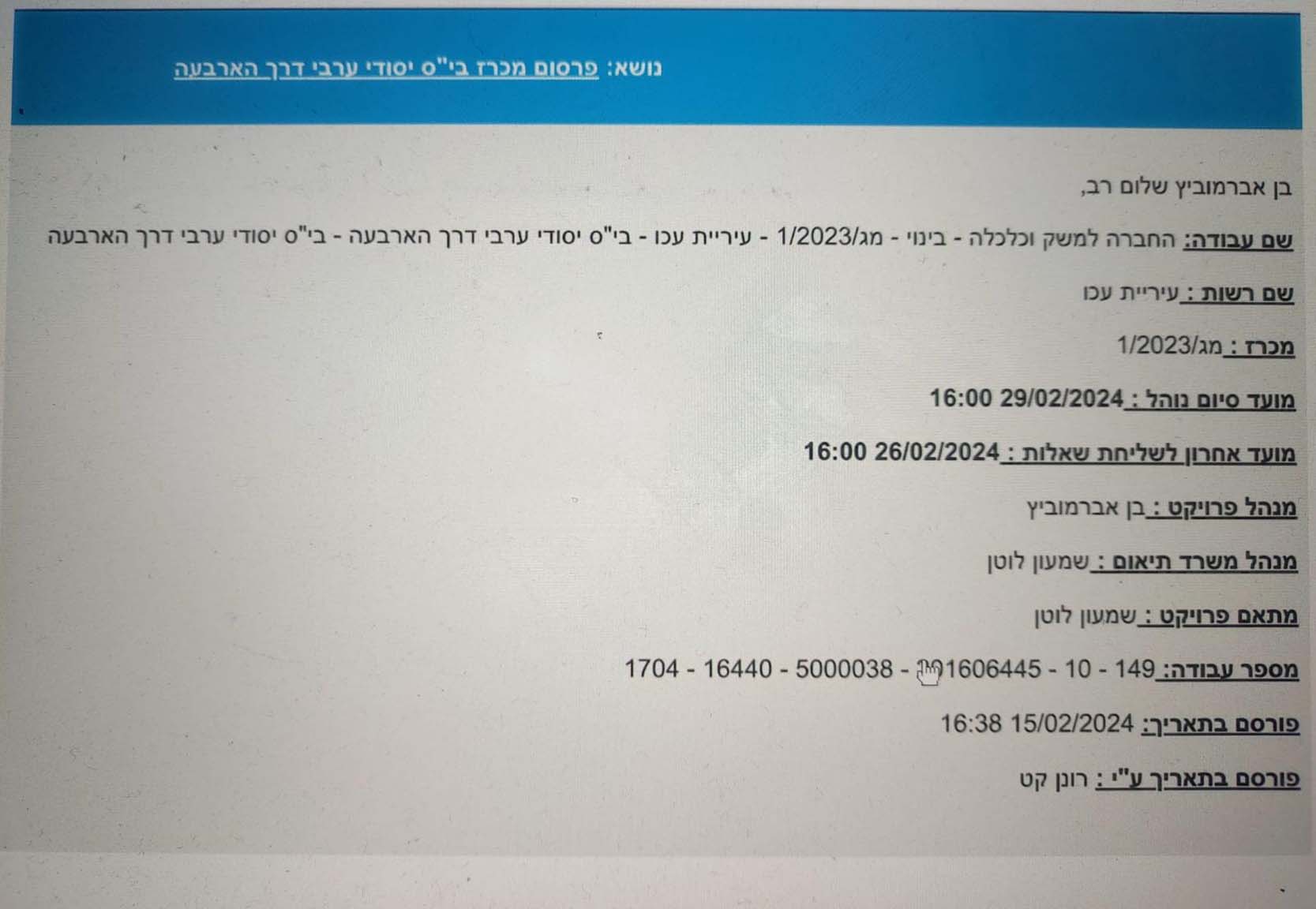 نشرت بلدية عكّا يوم الخميس 15.02.2024 مناقصة لبناء المدرسة الابتدائية العربية الثالثة، التي ستبنى في المنطقة القريبة من محطة الباصات ايجد (אגד) وسط المدينة.  وفقا للمناقصة، ستتكوّن المدرسة من مبان عصرية صديقة للبيئة، تشمل ثلاث روضات وبساتين و18 صفًّا تعليميًّا في المرحلة الابتدائية، بالإضافة إلى المختبرات العلمية والمكتبة المدرسية والساحات الخارجية والداخلية والملاعب، وموقف للسيارات؛ وفي المرحلة الثانية من البناء سيتم إنشاء قاعة رياضية حديثة أيضًا.