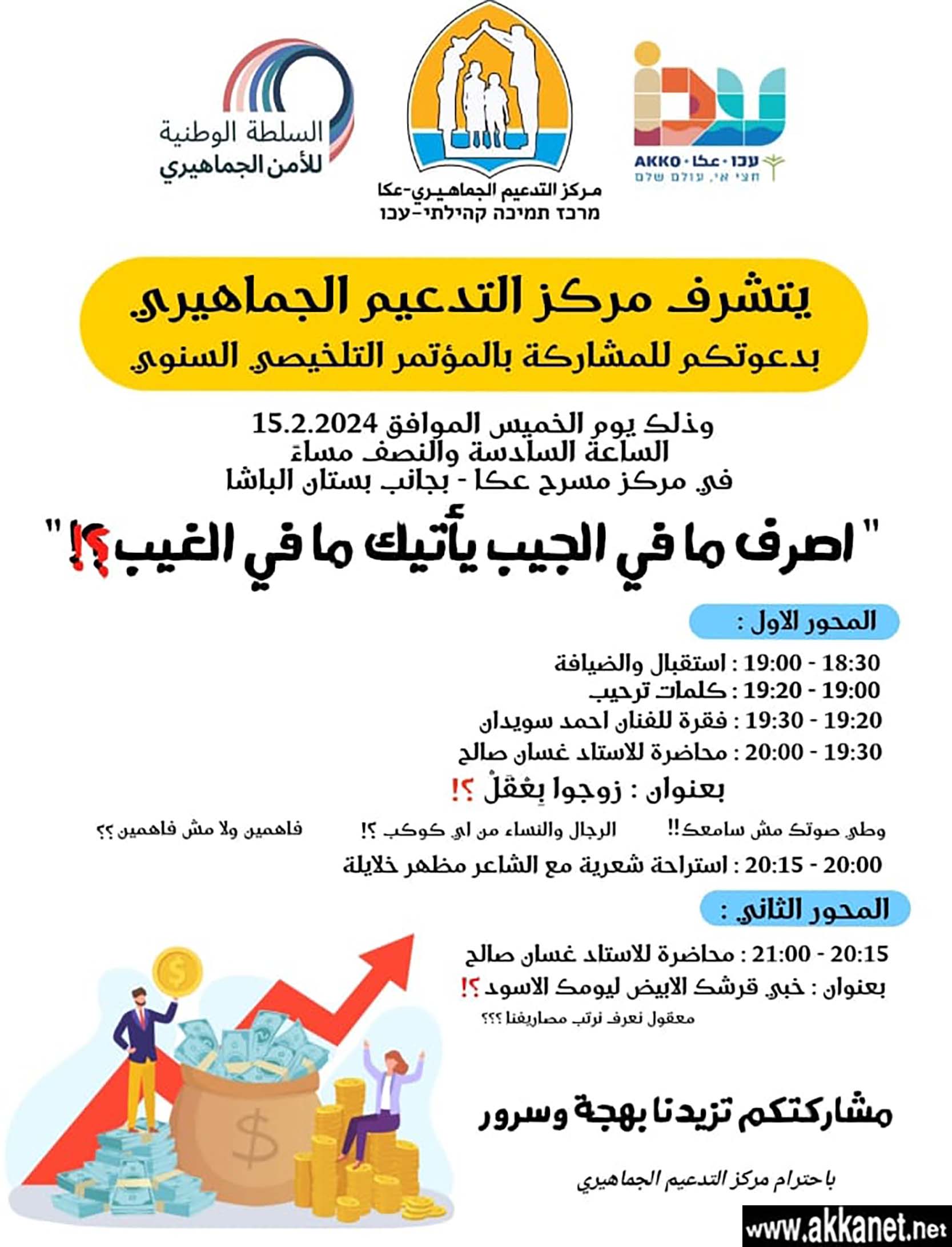 اقيم امس الخميس 2024.02.15 في مركز مسرح عكا وللسنه السابعة مؤتمر تلخيصي سنوي لمركز التدعيم الجماهيري .