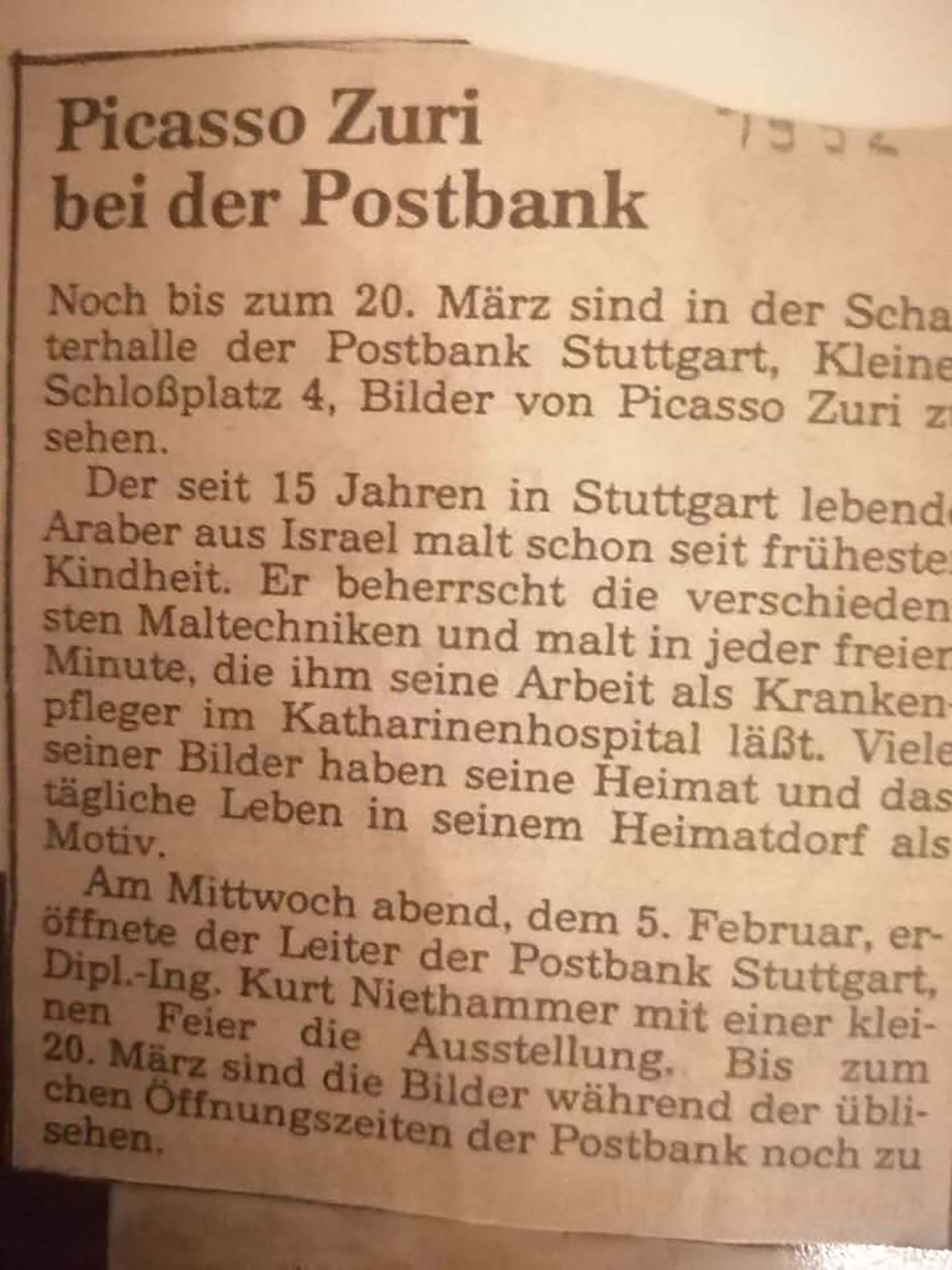 عكا… ما كتب عن الفنان العالمي بيكاسو احمد زوري ابن مدينة عكا في الصحف المحلية والألمانية سنوات السبعينات وما بعد