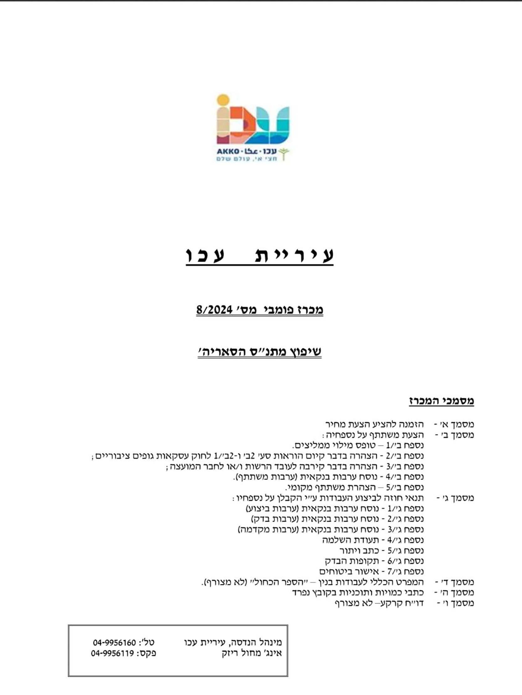 نشرت بلدية عكا مؤخرا مناقصة لترميم مبنى السرايا التاريخي في البلدة القديمة، تمهيدًا لإعادة افتتاحه كمركز جماهيري يخدم سكان المدينة خاصة في البلدة القديمة، بعد أن تعرّض للأذى خلال أحداث أيار 2021، وستبلغ تكلفة الترميم 2 مليون شاقل.